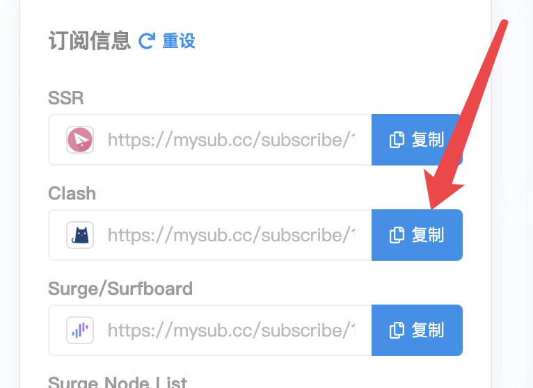 进入管理管理页面左侧栏复制clash订阅地址